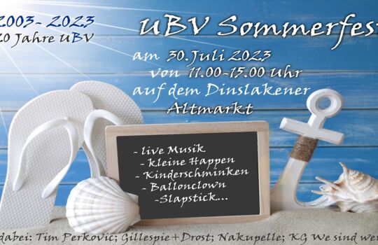 Die Unabhängige Bürgervertretung UBV feiert in diesem Jahr ihr 20jähriges Bestehen mit verschiedenen Aktionen für die Bürgerinnen und Bürger in Dinslaken.