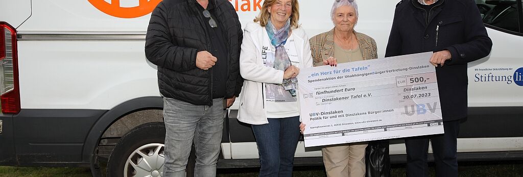 Dinslaken, 3.11.2023 – UBV feiert 20 Jahre bürgernahe Politik in Dinslaken und spendet 500 Euro an die Tafel